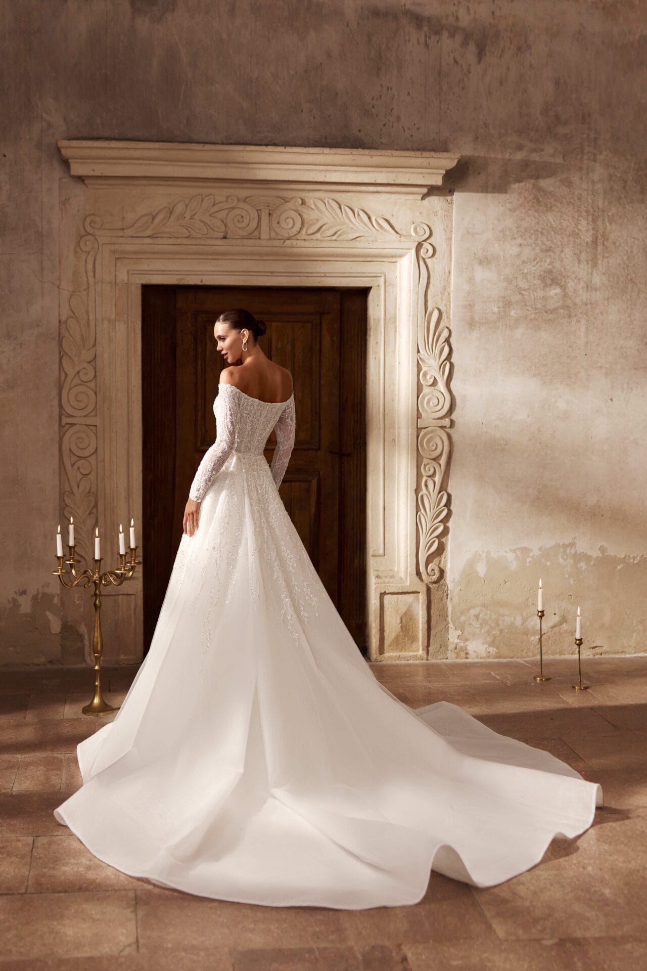 Modelul este ideal pentru mireasa care iubește luxul subtil și detaliul perfect finisat.
